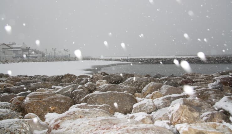 Neige sur la plage des Saintes-Maries-de-la-Mer (13) le 27 novembre 2013 - via Infoclimat