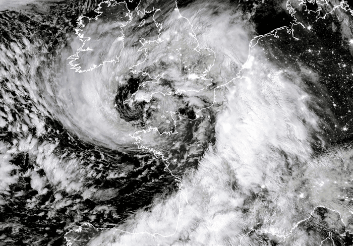 Image satellite de la tempête Ciaran le jeudi 2 novembre 2023 à 03h - via Météo France