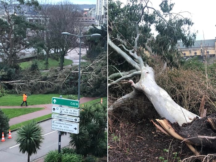 Chutes d’arbres à Cherbourg (50) ce lundi 16 janvier 2023 – photos via Bertrand Lefranc