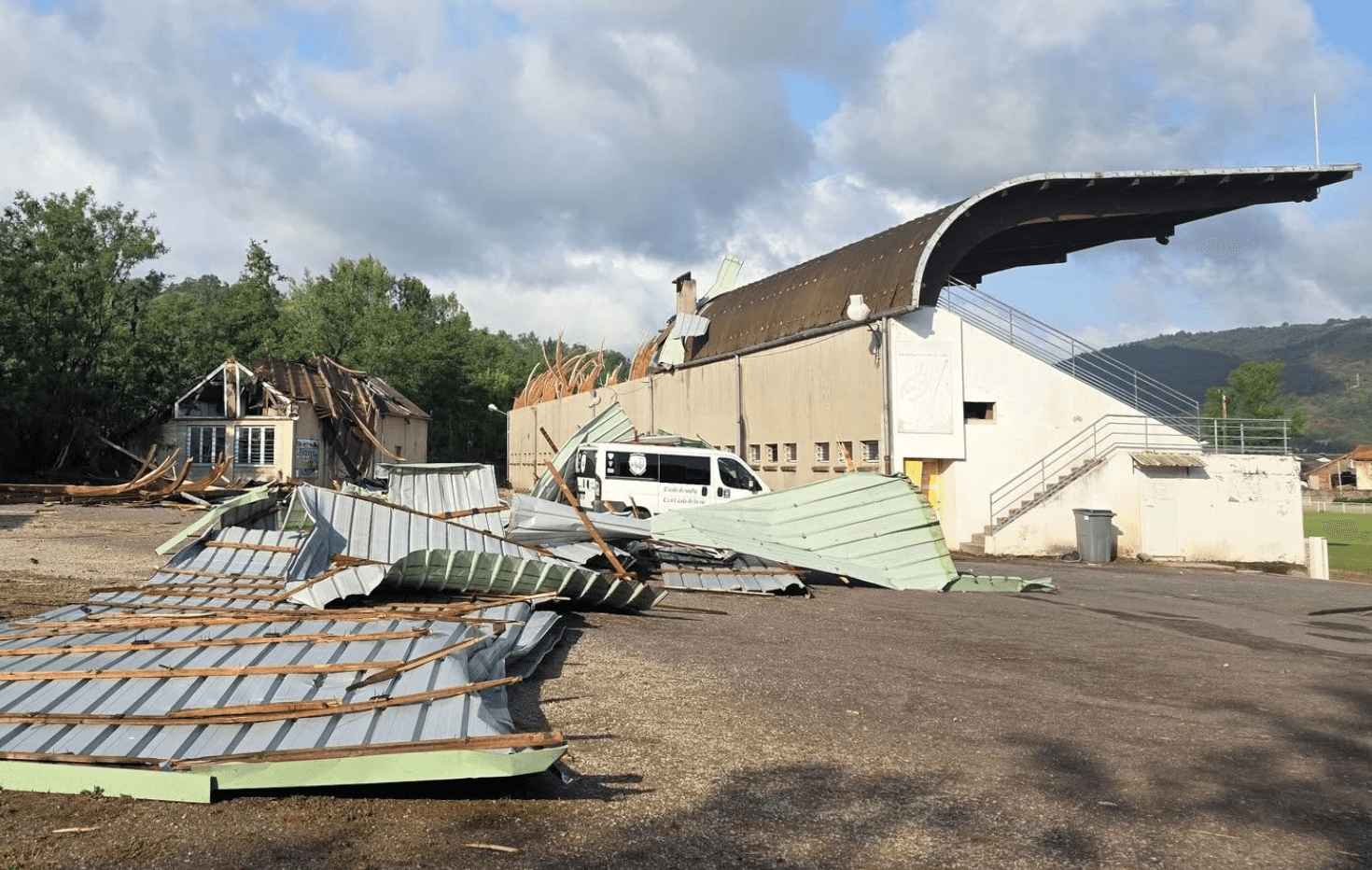 Stade fortement endommagé par les rafales de vent à Decazeville (12) ce mercredi 25 juin 2025 - Les échos de la Découverte