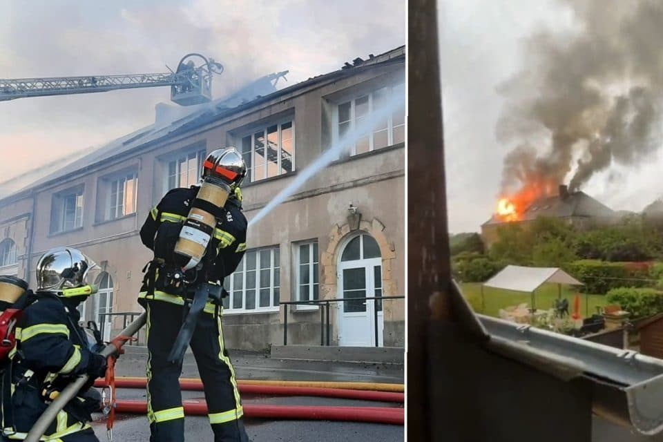 Incendie d'un foyer pour enfants causé par la foudre à Troarn (Calvados) le 15 mai 2022 - via Maxence Gorregues