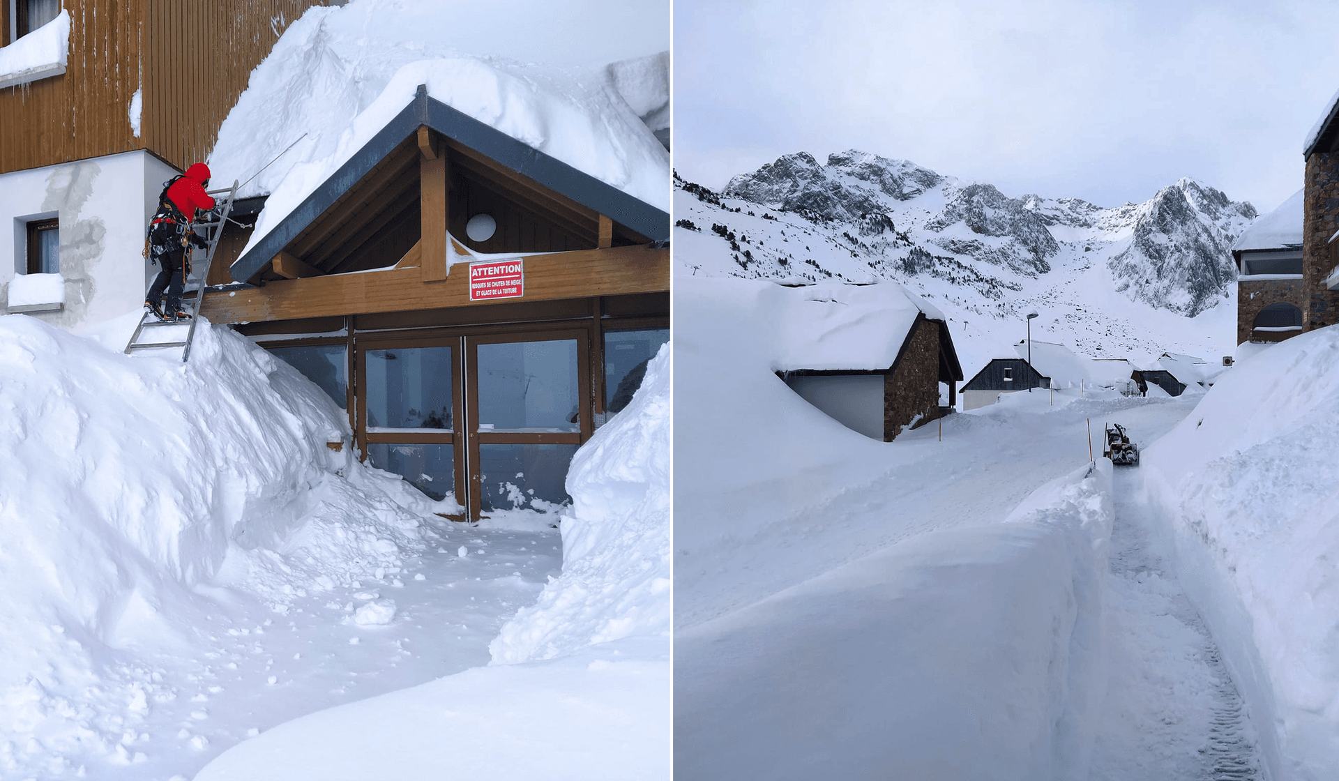 Avec une forte agitation et des précipitations abondantes depuis le week-end, les Pyrénées sont le massif français qui a reçu les quantités de neige les plus impressionnantes au cours des derniers jours. C'est dans l'ouest de la chaîne que les cumuls sont les plus importants. Ci-dessous, des clichés depuis la station de La Mongie (Hautes-Pyrénées) où la nivôse située à 1775 mètres d'altitude a enregistré 105 cm de neige fraîche tombés en l'espace de 72 heures !