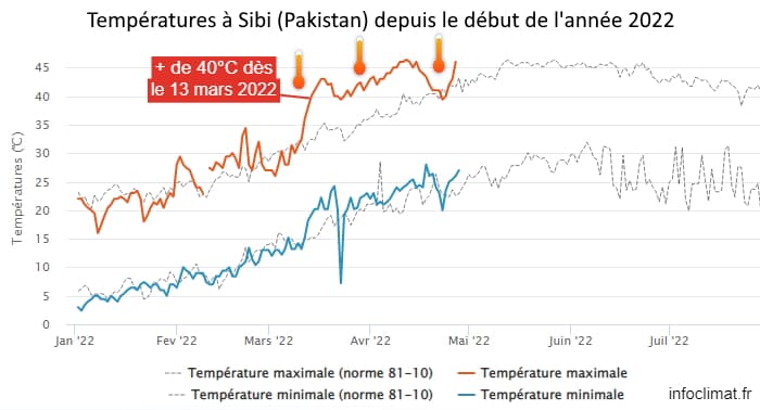 Températures relevées à Sibi (Pakistan) depuis le début de l'année 2022 - graphique infoclimat.fr