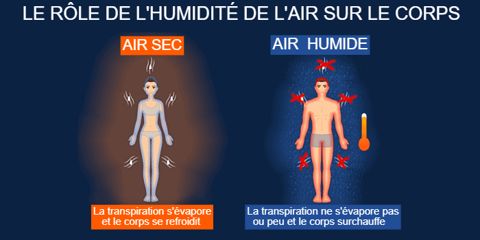 Schéma montrant le rôle de l'humidité de l'air sur notre corps par temps chaud