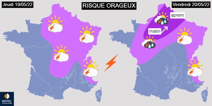 Risque orageux pour les jeudi 19 et vendredi 20 mai 2022 - Météo Villes