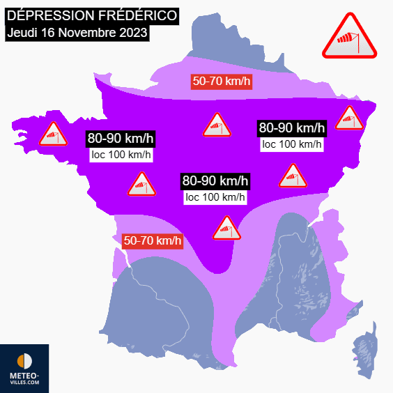 Rafales maximales de la dépression Frédérico ce jeudi 16 novembre 2023 – Météo Villes
