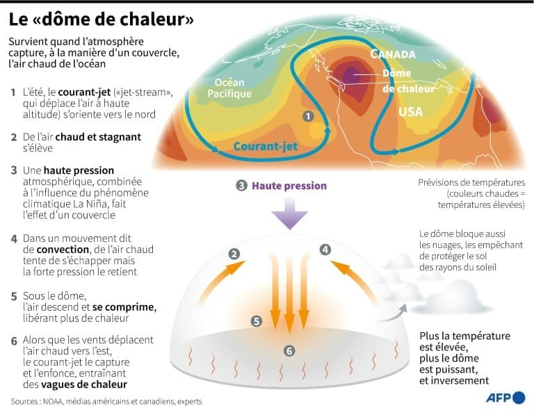 Infographie expliquant le mécanisme de "dôme de chaleur" - via AFP