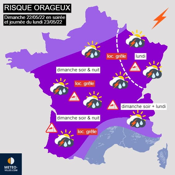 Risque orageux du dimanche 22 au soir jusqu'au lundi 23 mai 2022 - Météo Villes