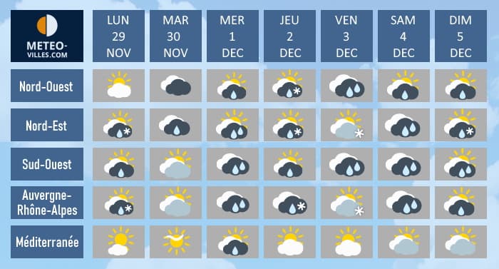 Prévisions du temps pour la semaine du lundi 29 novembre au dimanche 5 décembre 2021 - Météo Villes