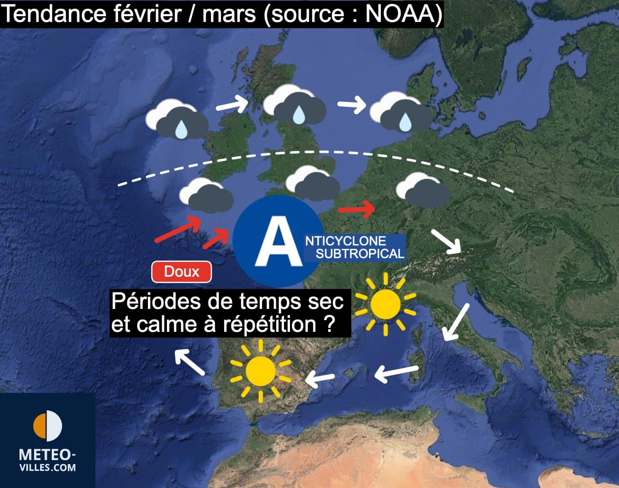 Une tendance de nouveau majoritairement calme et sèche pour les mois de février et mars 2023 sur la France - Météo-Villes