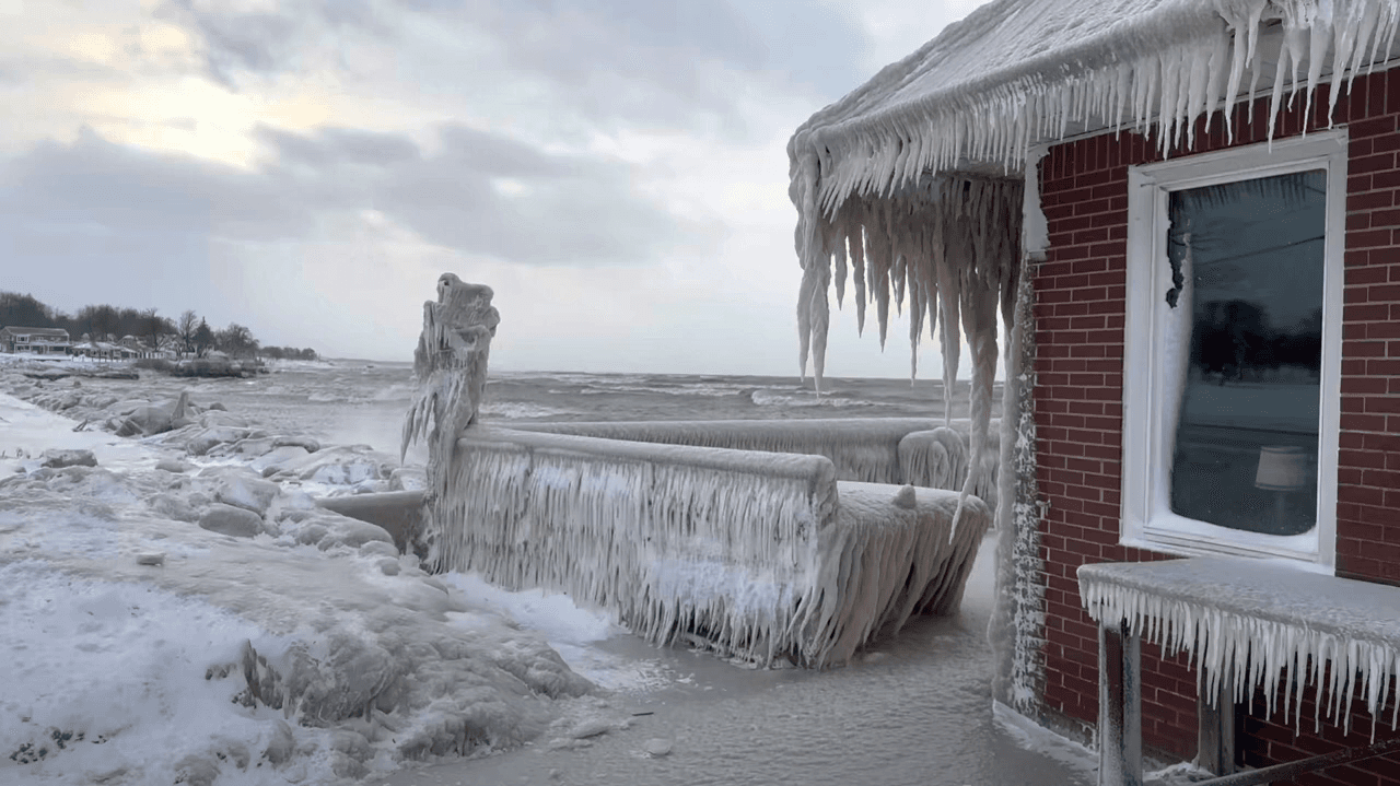 Maisons figées dans la glace à Buffalo (USA) sur les bords du lac Erie le 24 décembre 2022 - capture via Buffalo Weather