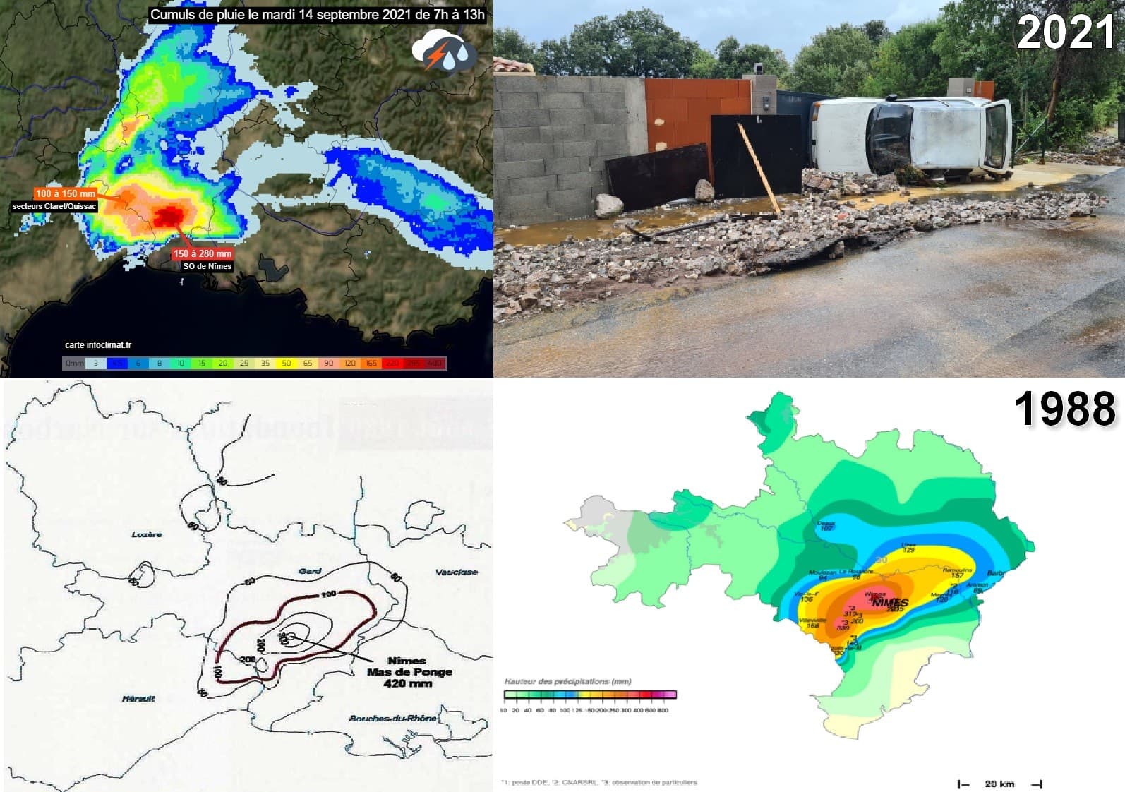 Octobre 1988 et septembre 2021, deux évènements diluviens très similaires sur le Gard - Météo-Villes