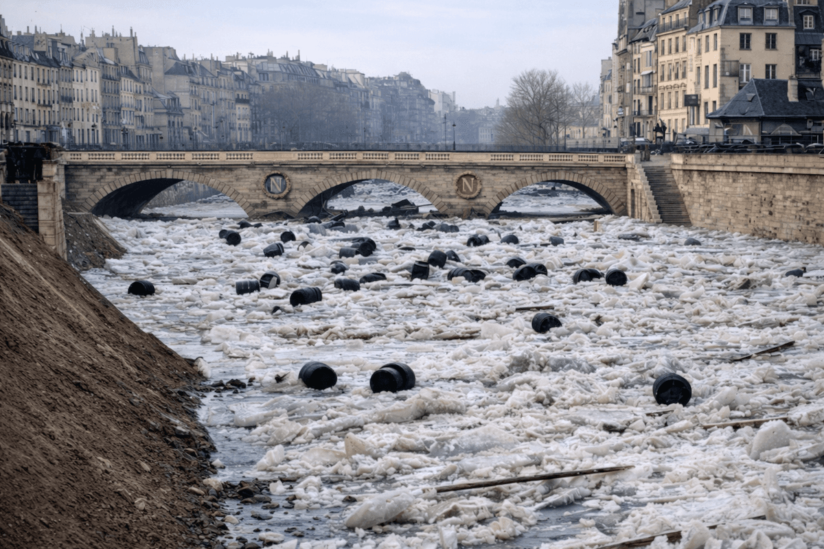 Après un mois de décembre 1879 glacial, les grands fleuves français sont figés dans la glace. Un redoux spectaculaire survient début 1880. La débâcle rapide provoque des dégâts considérables et fait s'effondrer des ponts.