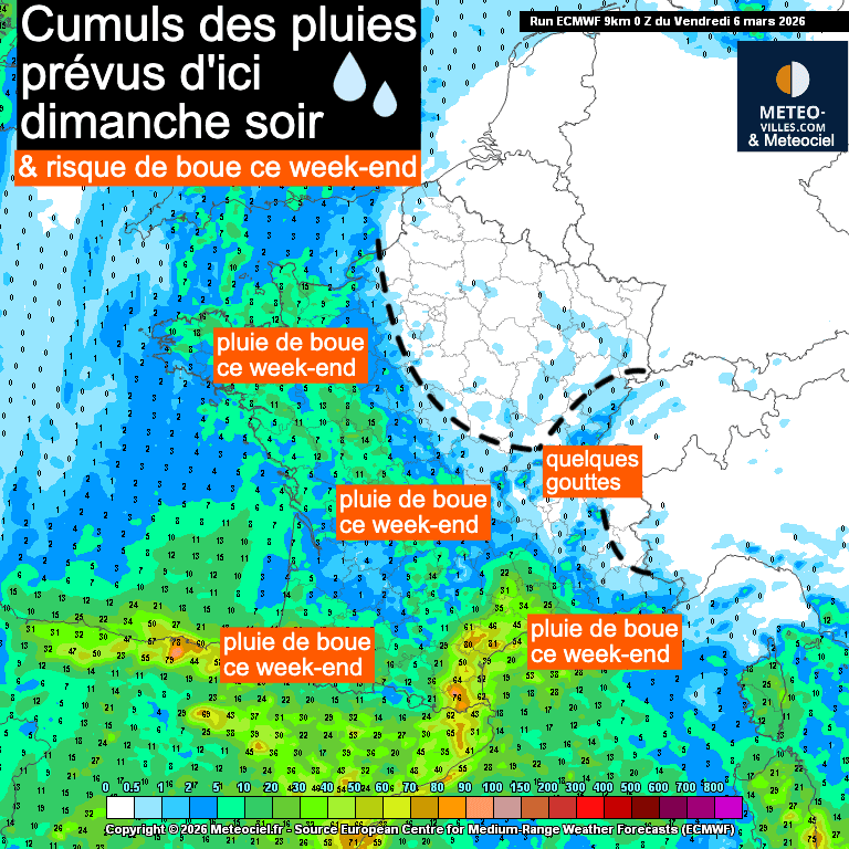 Risque de pluie de boue sur la France d'ici la soirée de dimanche - prévisions METEO-VILLES