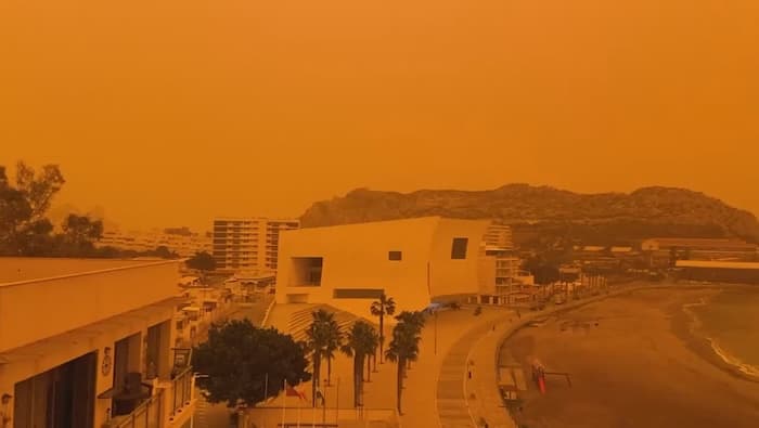 Grosses quantités de sable saharien dans le ciel d'Aguilas (sud-ouest de l'Espagne) ce 14 mars 2022 - photo Jose Gome Ros