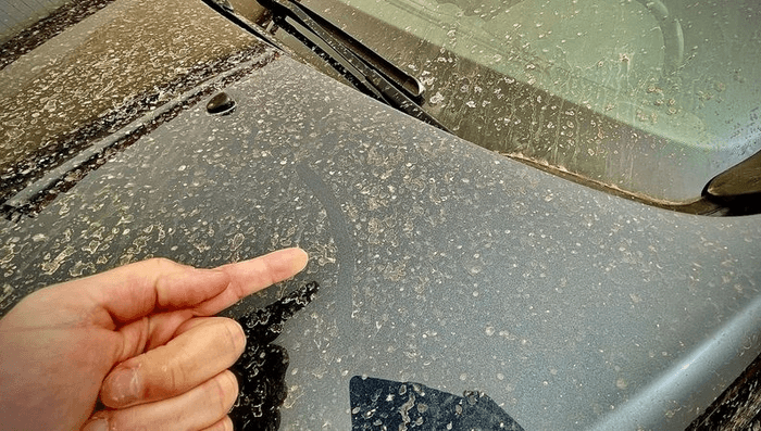 En cas de pluie, ces poussières de sable saharien salissent fortement la carrosserie des véhicules