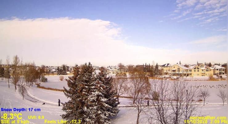 Plus à l'ouest dans le sud du Canada, les paysages sont totalement différents ! C'est une véritable vague de froid qui s'abat sur plusieurs provinces depuis le week-end. Dans le Saskatchewan, la capitale Regina n'a plus connu la moindre température positive depuis 5 jours et un manteau neigeux de 17 centimètres recouvre la ville. Plus impressionnant, le thermomètre y est descendu jusqu'à -20,3°C en matinée du mardi 10 novembre 2020 !