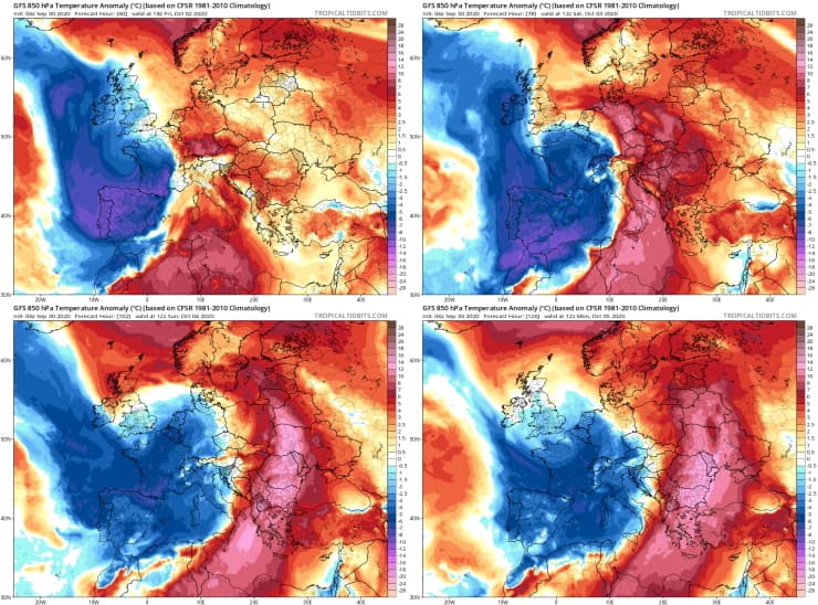 Anomalies de la masse d'air du 2 au 5 octobre 2020 - via tropicaltidbits.com