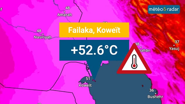 Les 52,6°C mesurés à Failaka au Koweït constituent un record absolu ! - carte météo&radar