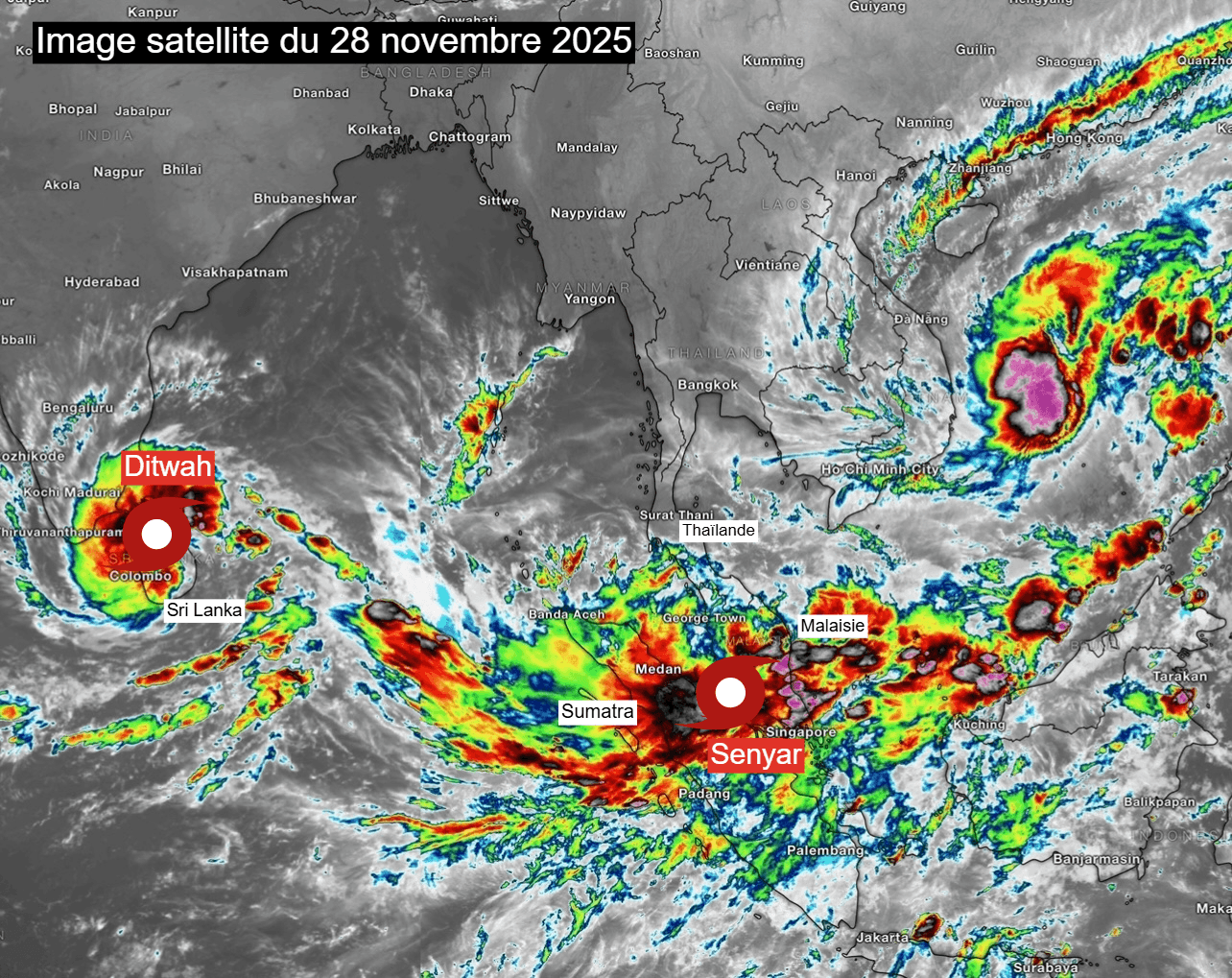 Du côté du Sri Lanka par exemple, c'est le passage du cyclone Ditwah à la fin du mois de novembre qui a favorisé la survenue de ces inondations catastrophiques, celui-ci s'accompagnant de pluies diluviennes touchant notamment l'est et le nord du pays. Entre l'Indonésie, la Thaïlande, la Malaisie, c'est également une tempête tropicale, nommée Senyar qui a engendré ces pluies extrêmement intenses à la fin du mois de novembre. Ce cyclone s'est en plus formé dans un endroit très atypique puisqu'il est seulement le second à prendre forme dans le détroit de Malacca depuis le début des observations météorologique après Vamei en 2001.
