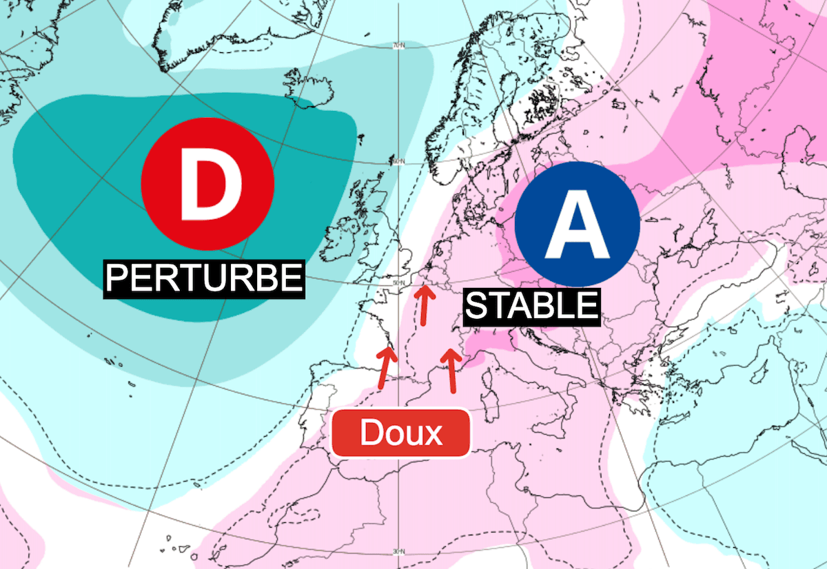 Ce courant généralement orienté au sud permettra à l'air très doux de remonter d'Afrique du Nord avec des températures parfois très élevées pour la saison (notamment dans le Sud-ouest). Globalement sur la semaine, l'anomalie sera de +1 à +3°C au-dessus de la normale.