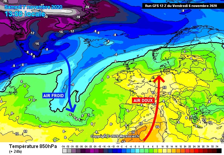 Masse d'air à échelle continentale ce samedi 7 novembre 2020 - via meteociel.fr