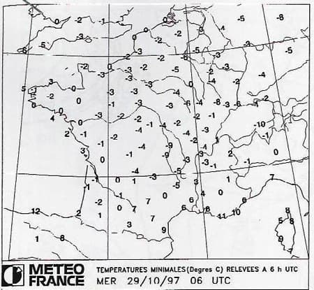 Températures minimales sur la France le 29 octobre 1997 - Météo-France