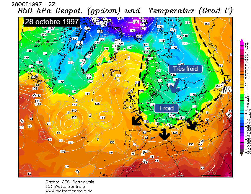 Situation du 28 octobre 1997 sur l'Europe - Wetterzentrale