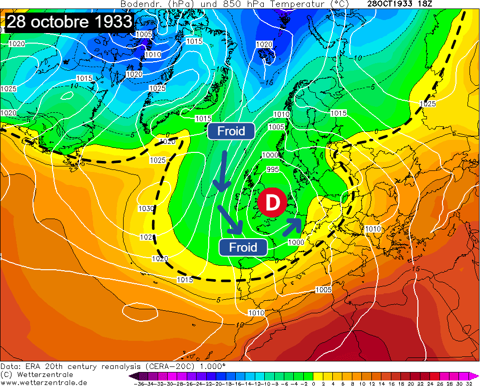 Situation du 28 octobre 1933 sur l'Europe - Wetterzentrale