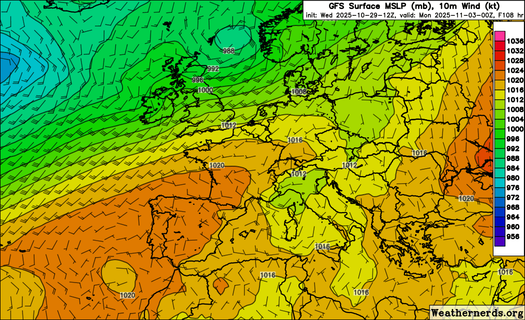 Pression atmosphérique du lundi 3 au dimanche 9 novembre 2025 - weathernerds.org