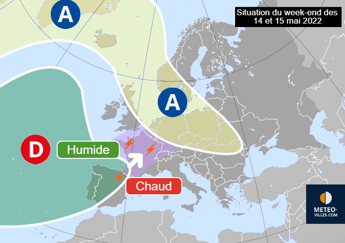 Situation atmosphérique pour le week-end des 14 et 15 mai 2022 - Météo-Villes