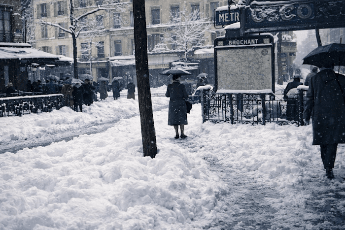 Neige abondante au métro Brochant de Paris début mars 1946 - Chronique Météo Villes