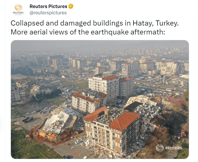 Bâtiments effondrés après le séisme à Hatay (Turquie) le 7 février 2023 - via Reuters