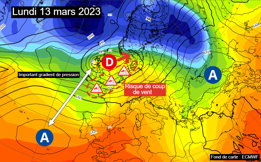 Risque de coup de vent sur la France le lundi 13 mars 2023 - Météo-Villes