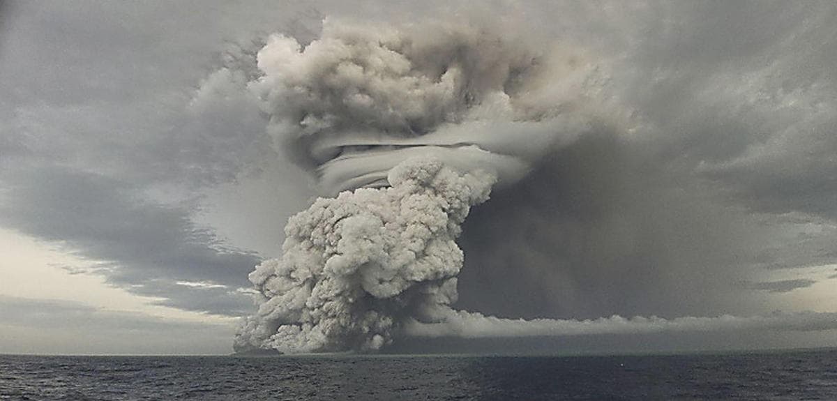 Éruption du volcan Hunga Tonga (archipel des Tonga) en janvier 2022 - via CNRS