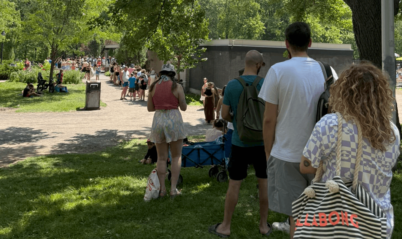 Queue interminable devant une piscine de Montréal (Québec) ce lundi 23 juin 2025 sous 34,9°C - photo Montreal Now