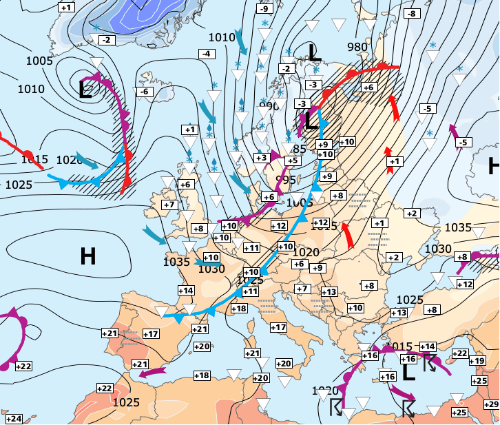 + En revanche, avec le rétablissement des conditions anticycloniques entre la France et l’Europe centrale, les averses laisseront rapidement place à un temps plus sec dès vendredi.