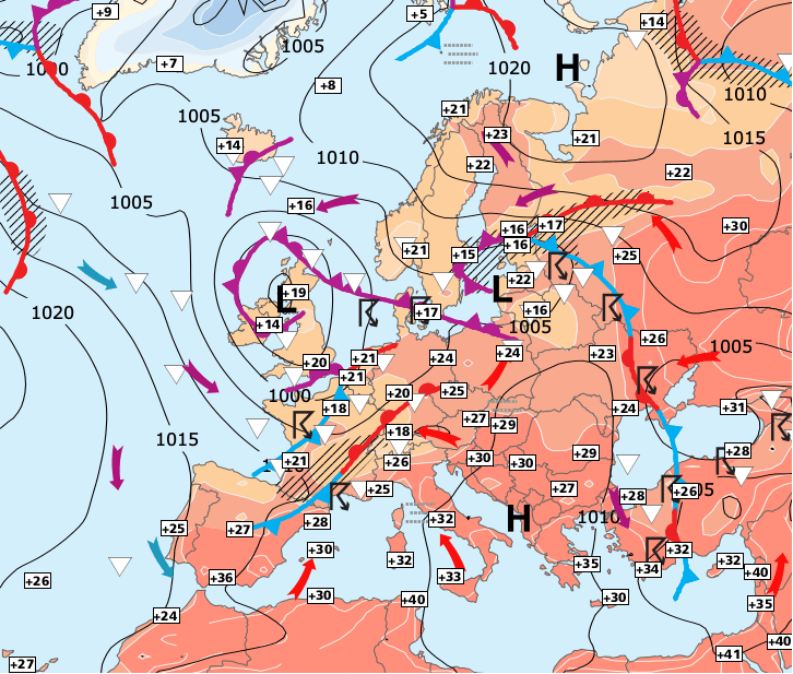 + La chaleur restera sans excès dans un premier temps et aucune période caniculaire n'est en vue pour le moment. En revanche, après une petite accalmie, la chaleur va de nouveau s’accentuer entre le Sud-est de l’Espagne, le Sud de l’Italie et la Grèce !!